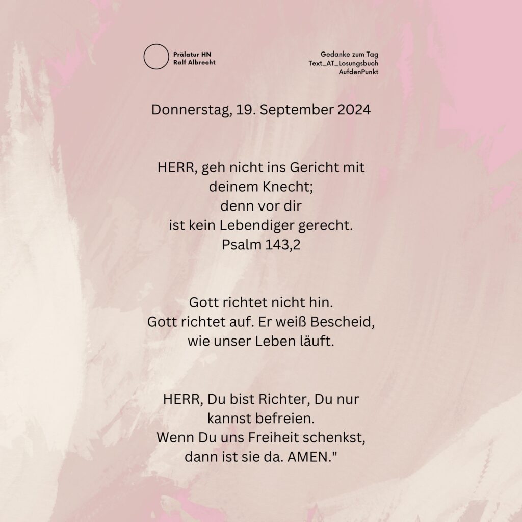 Die Losung der Herrnhuter Brüdergemeinde zu Donnerstag, dem 19. September 2024. Kombiniert mit kleinen Gedanken und einem kleinen Gebet.